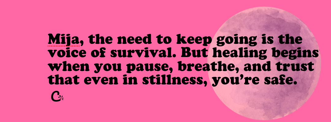 Mija, I’m proud of you, whether you’re just starting your healing journey or knee-deep in it. You don’t have to hustle your way to healing. You just have to show up for yourself, even in stillness.